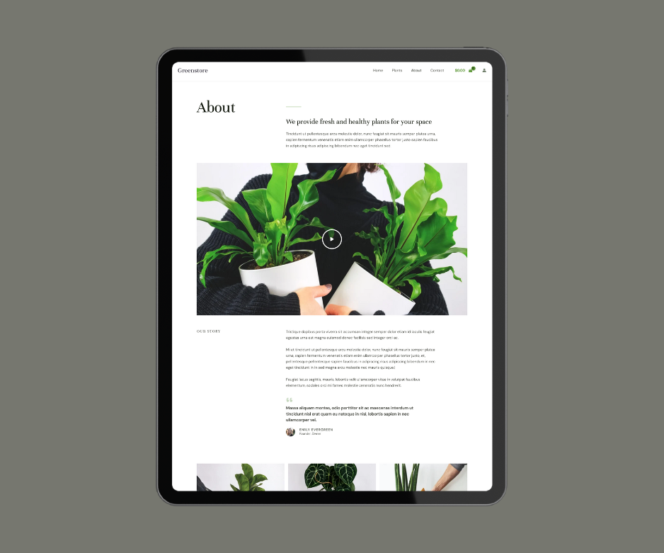 Die Vorlage ist modern, frisch und einfach anzupassen. Mein Pflanzenladen sieht jetzt online richtig einladend aus!