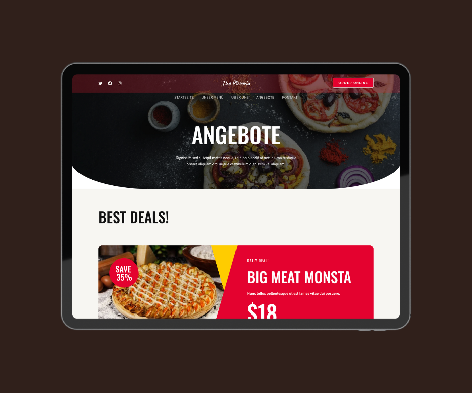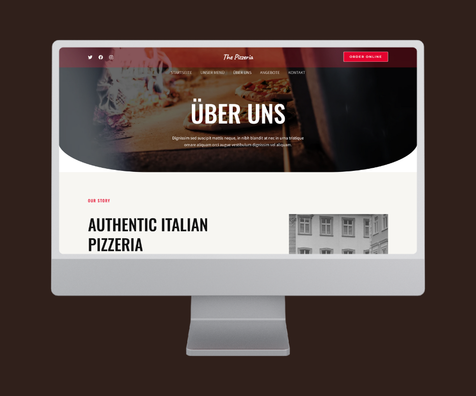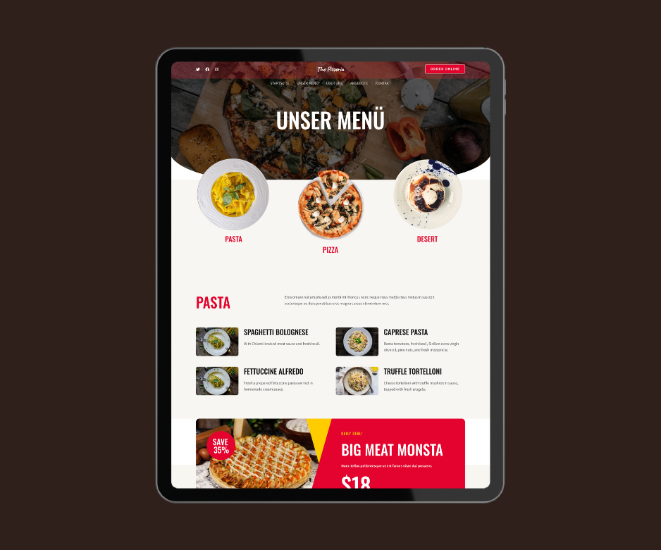 Hochwertige Design, perfekt für Pizzeria Website