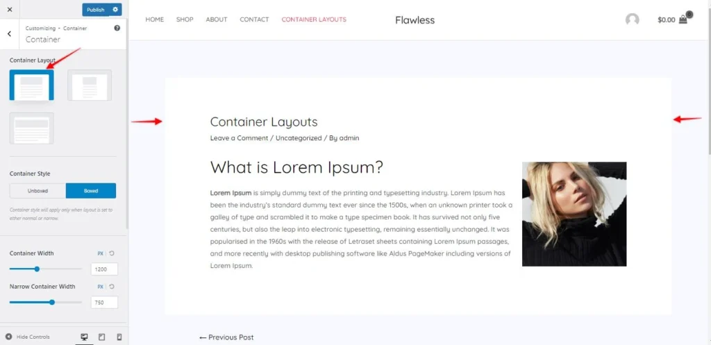 Überarbeitete Container-Layout-Optionen: Die bisherigen fünf Container-Layout-Optionen wurden verfeinert und zu drei neuen Optionen zusammengeführt, die jeweils auf spezifische Designpräferenzen und Inhaltsanforderungen ausgerichtet sind: