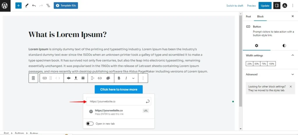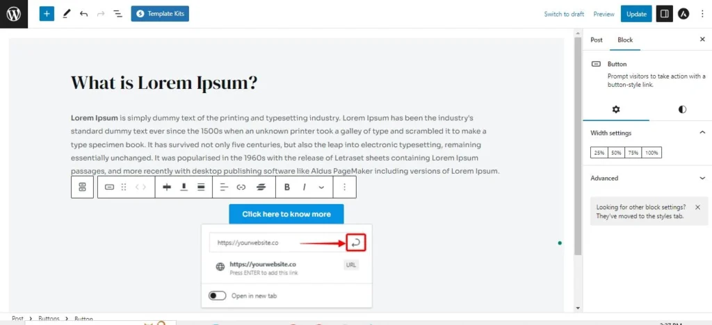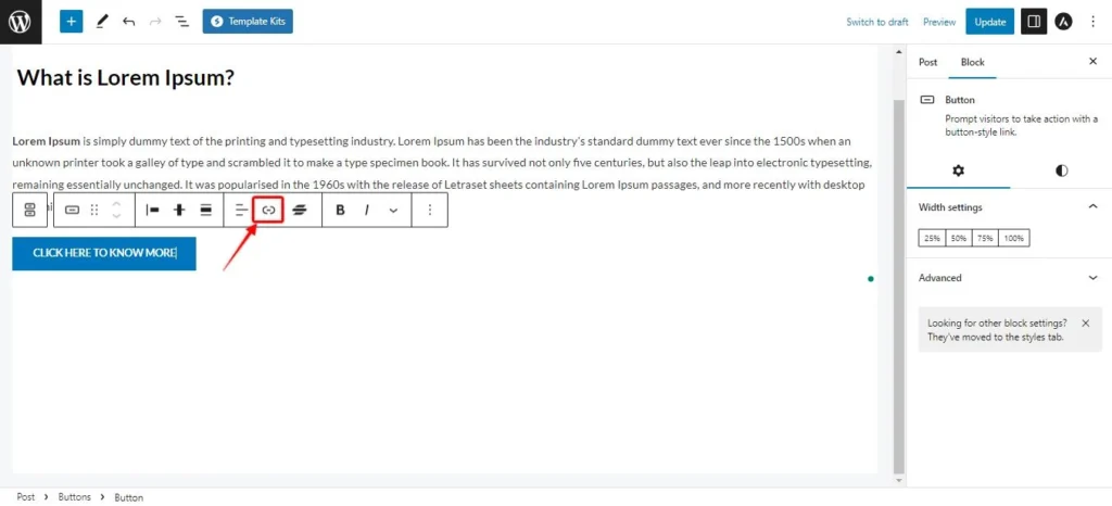 - Wähle den Button-Block aus.